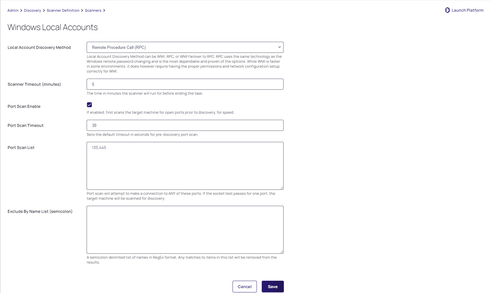 Figure: Edit Discovery Scanner for Windows Local Accounts